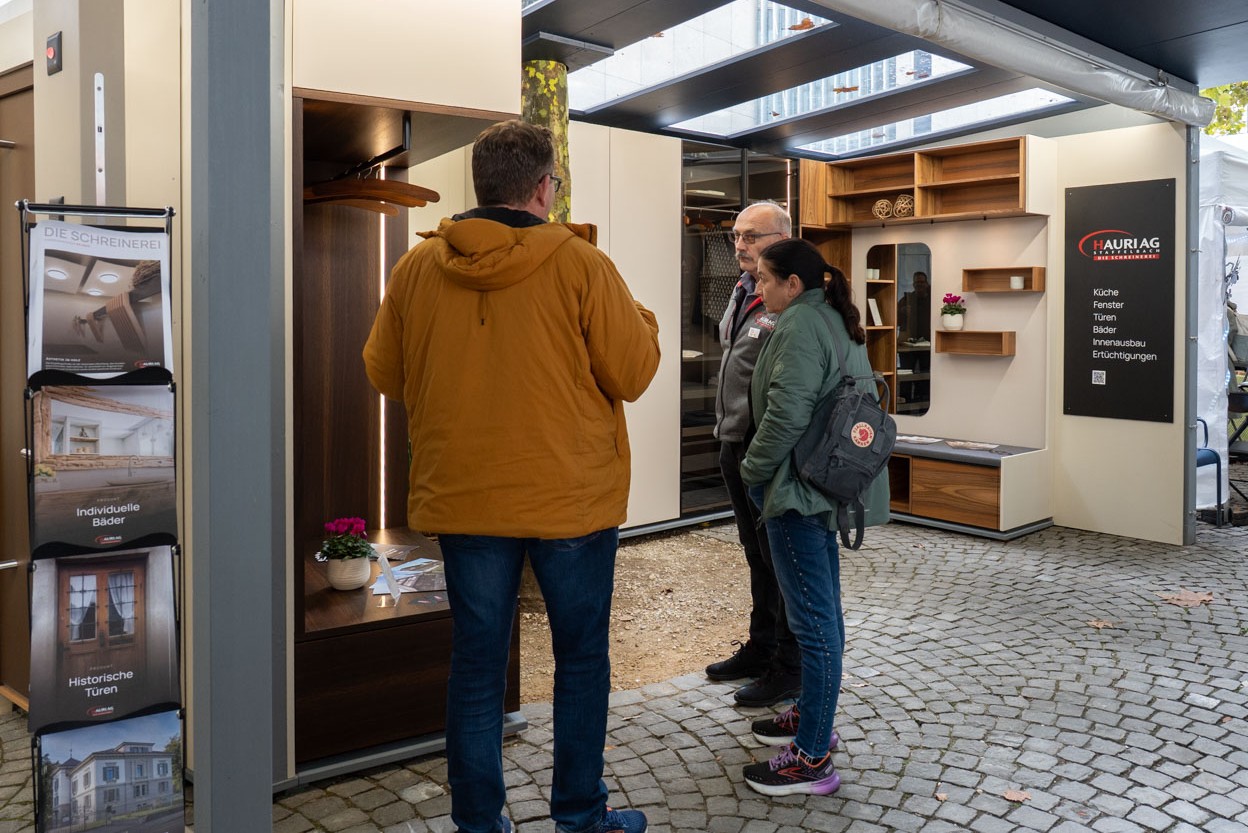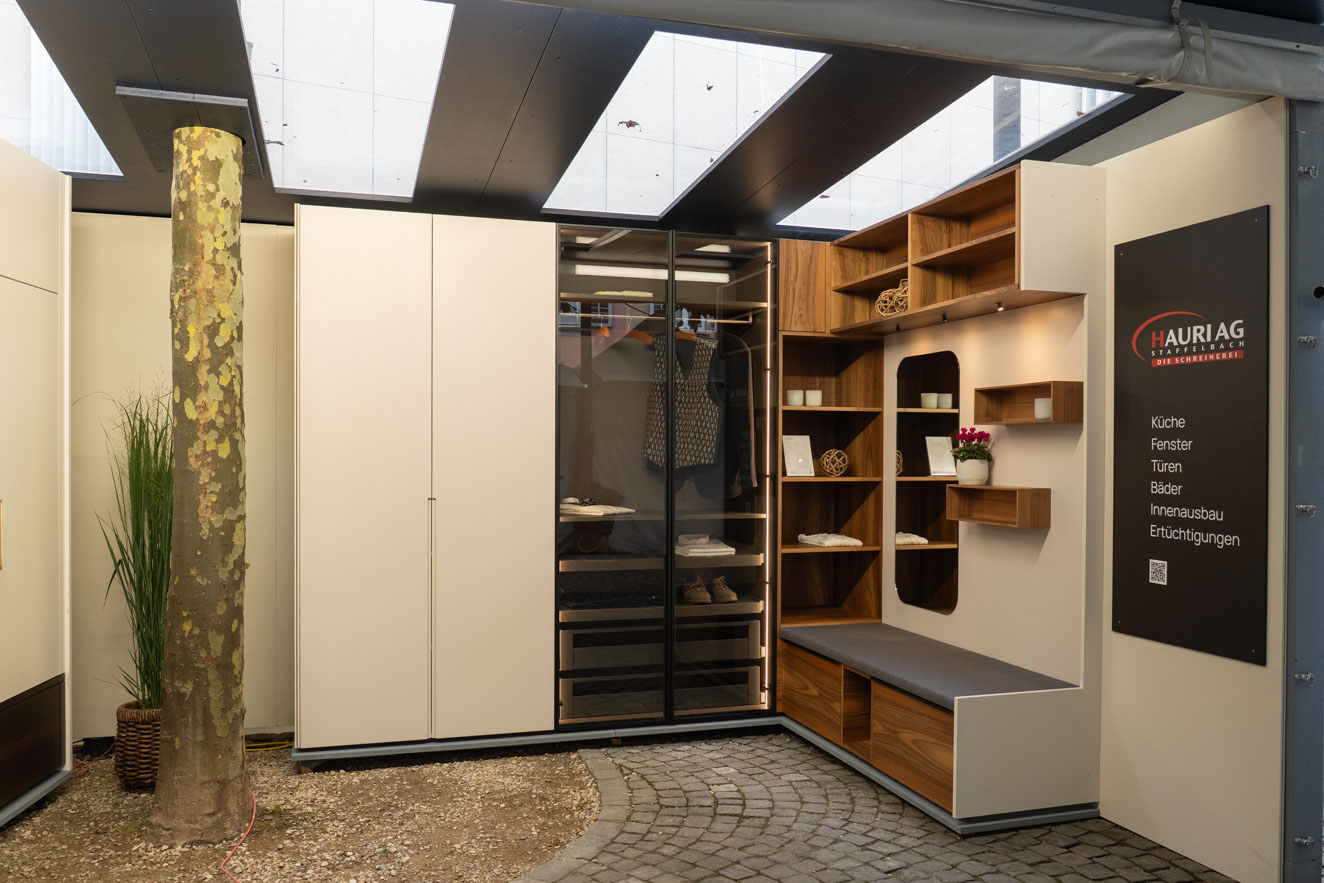 Am diesjährigen Markt Aarauer Gewerbetreibender MAG in Aarau standen unsere selberproduzierte Inneneinrichtungen im Zentrum. An unserem Stand gab es viele schöne Möbel mit speziellen Details zu entdecken: ein beleuchteter Kleiderschrank, eine Garderobe mit individuell platzierbaren Haken und Tablare oder eine stilvolle Weinkeller-Ausstattung mit integriertem Weinkühler.